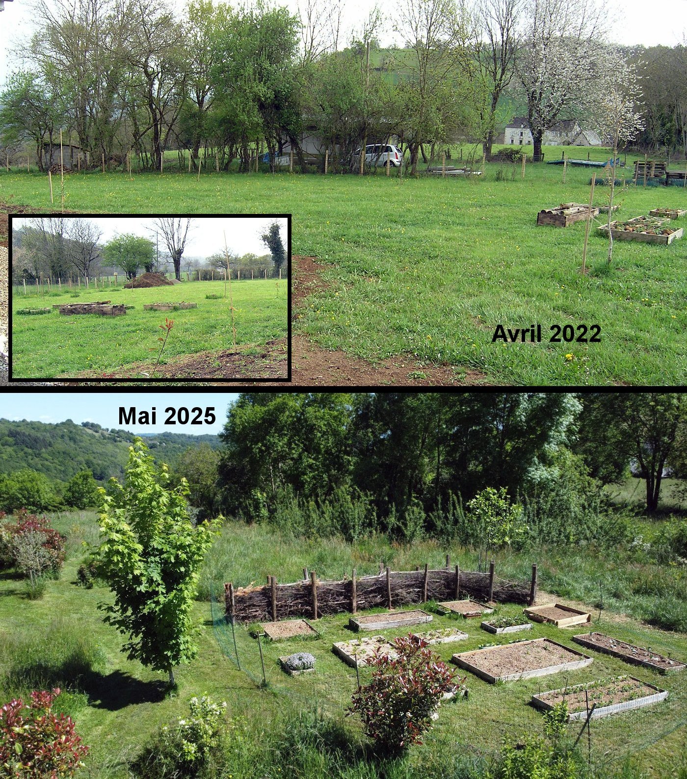 Evolution du terrain en 2022, 2024 et en 2025.