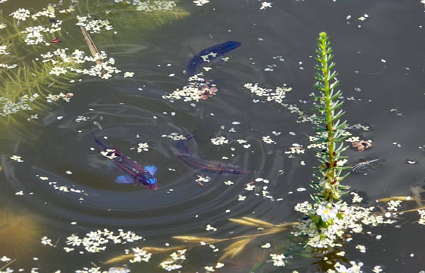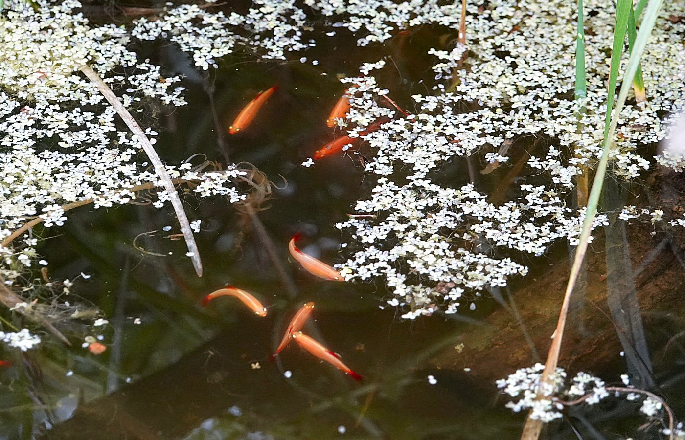En plus de s'attaquer aux espèces elles même, c'est à leur habitat que les poissons rouges s'en prennent. Il pourra y avoir des grenouilles et des libellules qui sont venues de l'extérieur dans un bassin à poissons (les tritons cela sera bien plus difficile), mais ils n'arriveront tout simplement pas à se reproduire correctement.