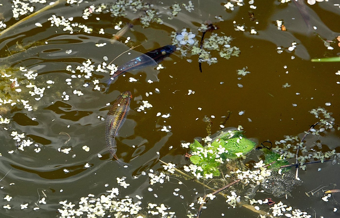 En fait le poisson est un super prédateur, dans un point d'eau il est en haut de la chaine alimentaire (j'exclu le héron, mais lui il est hors de l'eau). La présence de poissons est un énorme frein au développement de la biodiversité aquatique, et encore plus les fameux poissons rouges ou les koïs. Ce sont des espèces qui prolifèrent et dont l'appétit est sans limite, ainsi ils détruisent une partie de la faune et de la flore du point d'eau qu'ils occupent. Par ailleurs ce sont de vrais bulldozzers qui remuent le fond, déracinent, polluent et troublent l'eau.