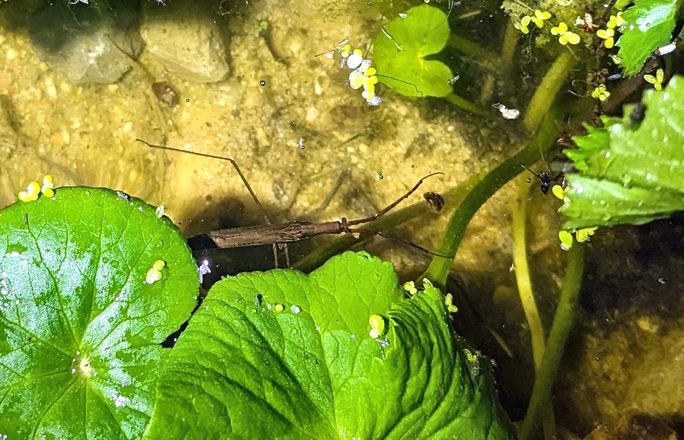 Ranatre linéaire (c'est une punaise aquatique, ne pas cofondre avec un phasme) - l'insecte sur la photo est sous l'eau.