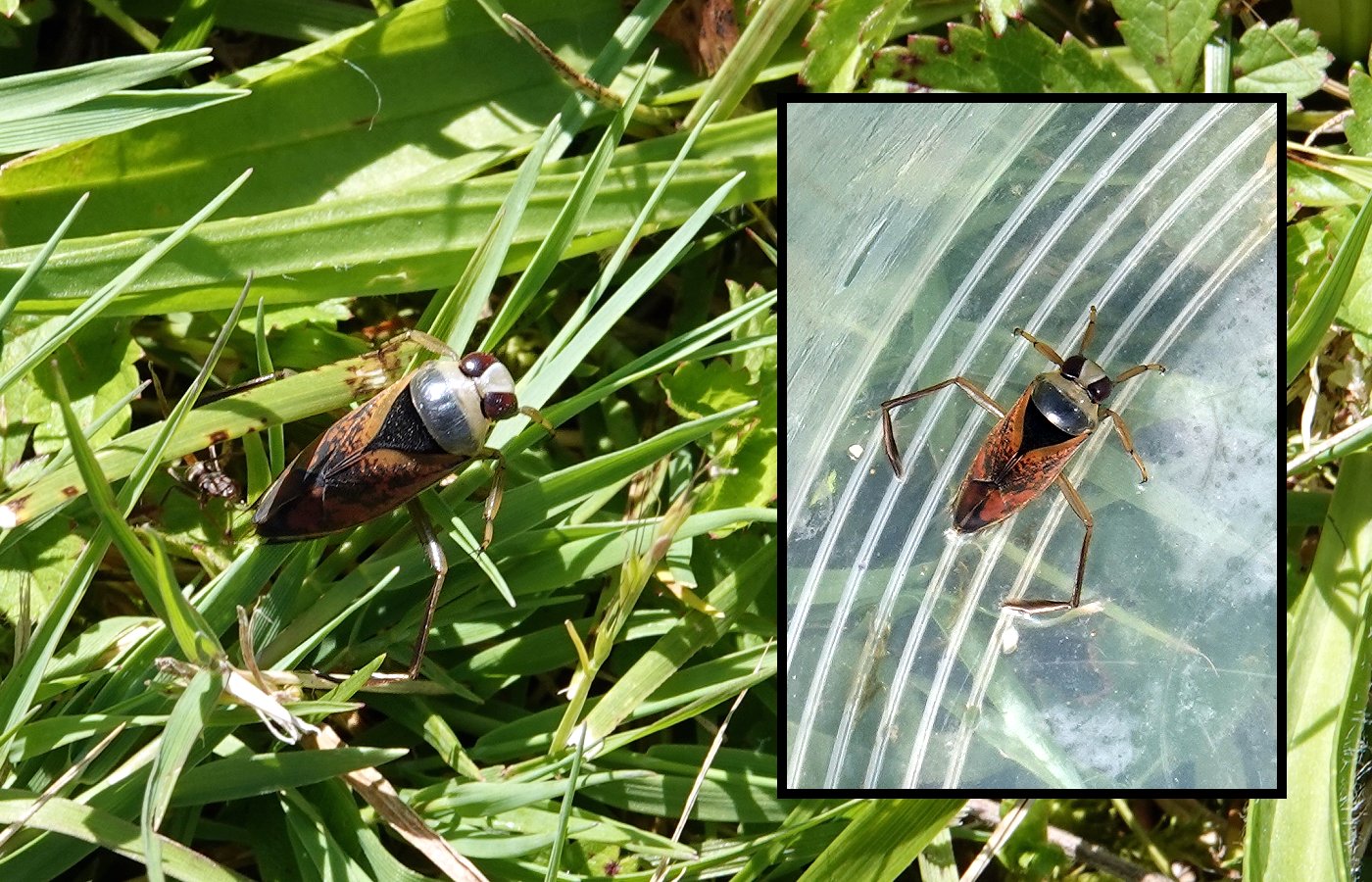 Le Notonecte, une punaise qui nage et marche à l'envers sous la surface de l'eau.