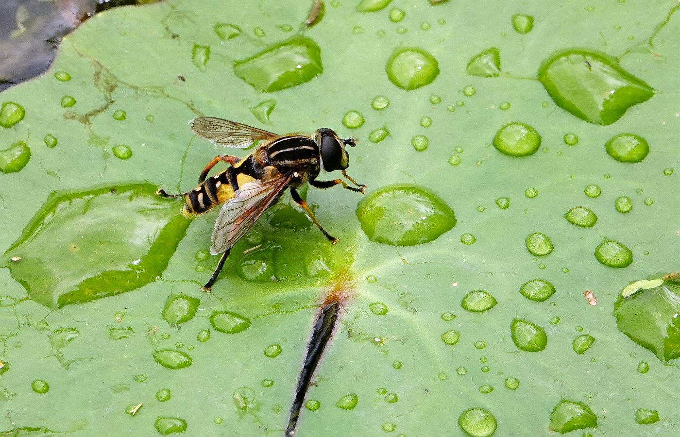 Syrphe (il y en a plusieurs espèces, la larve de celle de la photo est aquatique, ce qui n'est pas le cas de toutes)