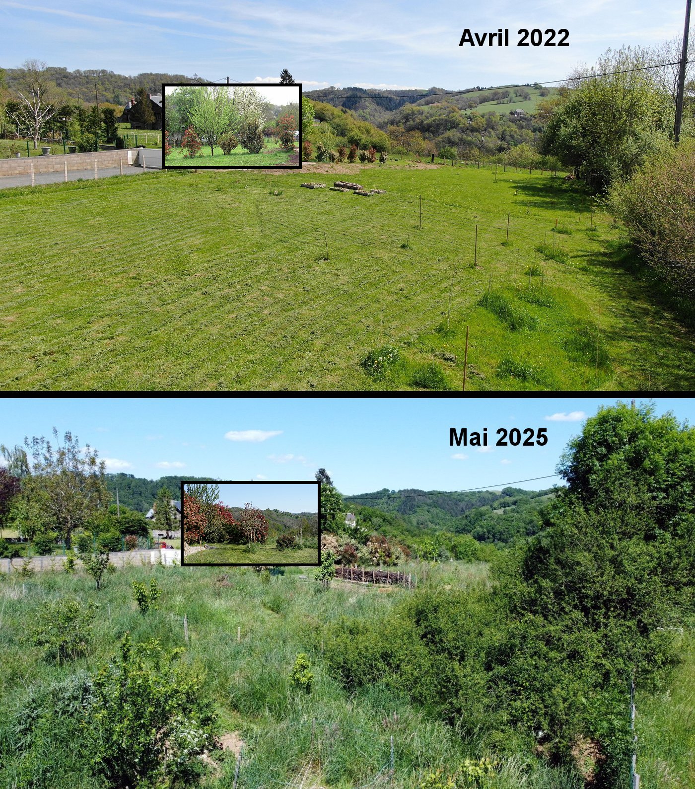 Evolution du terrain en 2022, 2024 et en 2025.