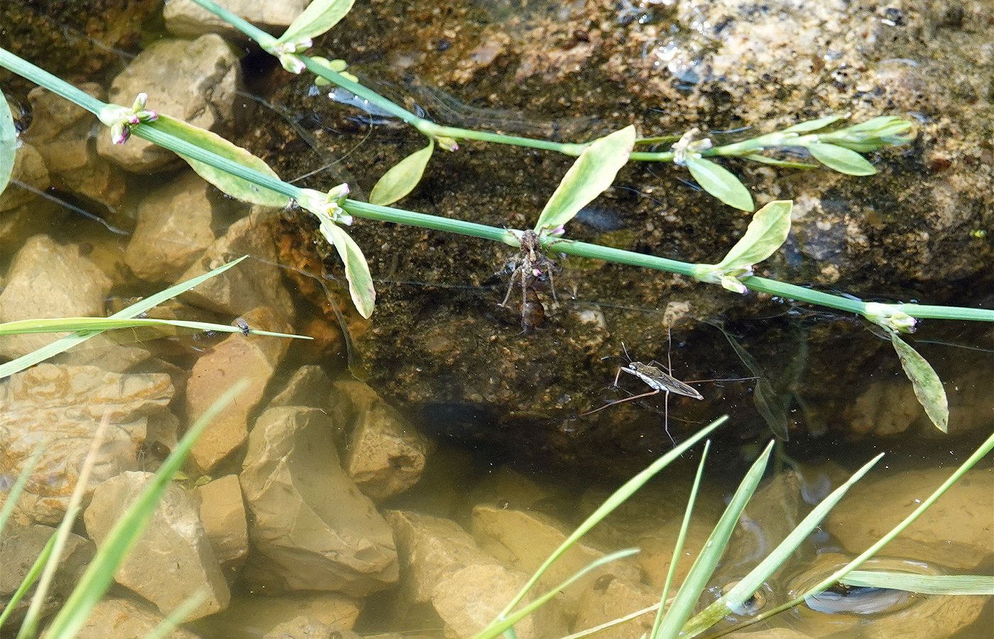Ranatre linéaire (c'est une punaise aquatique, ne pas cofondre avec un phasme) - l'insecte sur la photo est sous l'eau.
